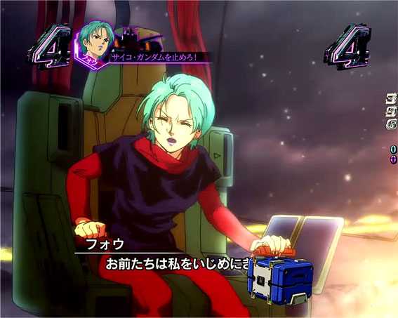 ・タイトル(赤・金) ・テロップ(赤) ・BGM変化 ・クワトロ参戦 ・Zガンダムハイパー化 ・最終煽りネガポジ ・最終煽り前Zロゴ上昇 |