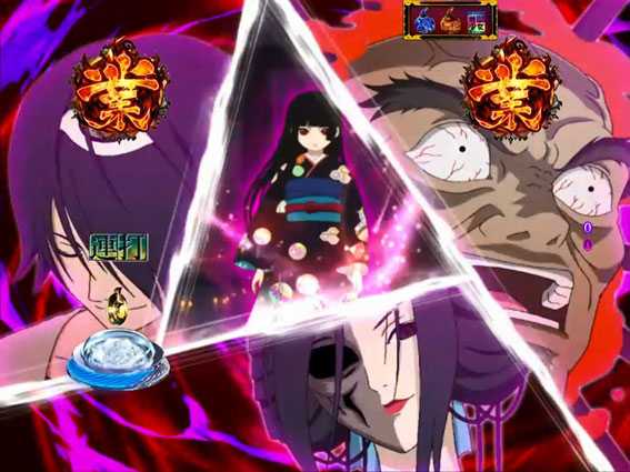 地獄少女図柄が揃うと発生する16R確変大当り。終了後は真地獄少女モードに突入する。