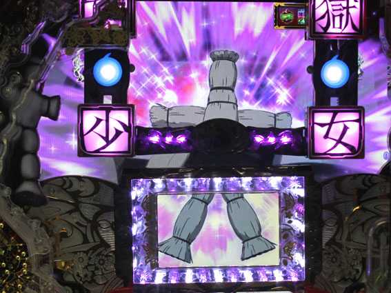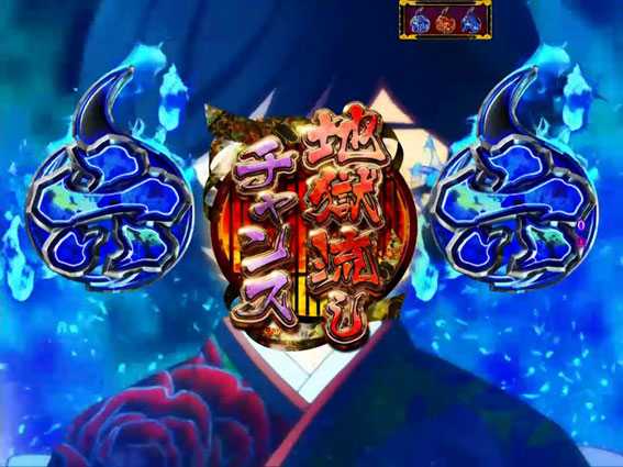 図柄揃い直後は昇格演出が発生。揃った図柄がスクロールし、最終的に地獄少女図柄揃いで止まれば16R確変昇格となる。