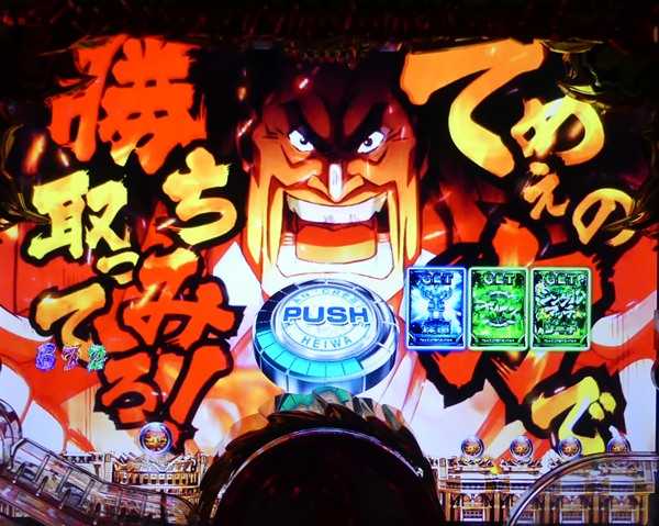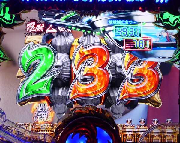 偶数図柄揃いは闘魂CHANCE終了のピンチ。ファイナルチャンスで闘魂CHANCE継続に返り咲くことに期待しよう。ファイナルチャンス発生時は、百烈ビンタ<一撃延髄斬り<1・2・3・ダー!<引退逆転演出の順に闘魂CHANCE継続のチャンスとなる。