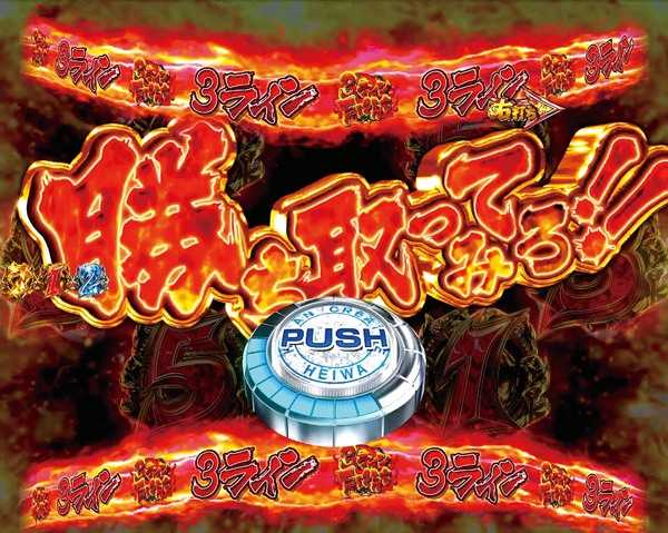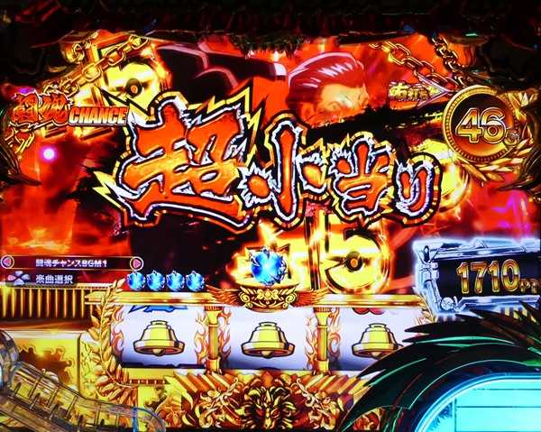 闘魂CHANCE中はSUPER小当りRUSHが発動! これにより、大当りしなくても出玉が増加することになる。もちろん、大当り間でハマるほど出玉増加が見込めるぞ。ベル・スイカ・チェリーが揃うと小当り以上当選濃厚となり、スイカやチェリーなら超小当り期待度がアップする。7揃いやBAR揃いなら大当り必至!? なお、闘魂CHANCE突入後は、確変継続=闘魂CHANCE継続となるため、大当りしても60%で闘魂CHANCEがループする。