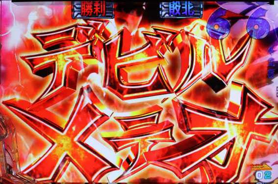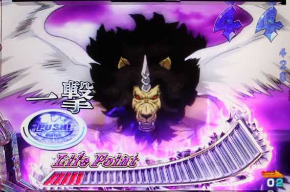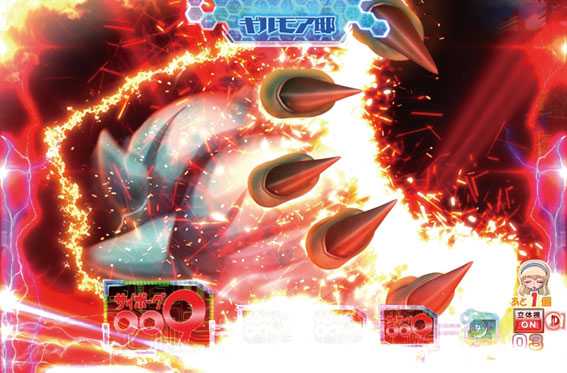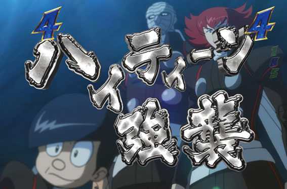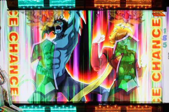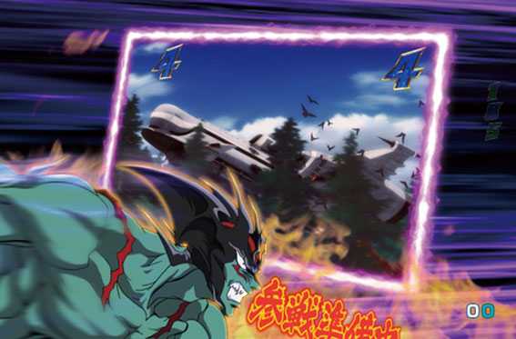 奇数図柄がテンパイすると発生。009とデビルマンが共闘してアトゥンを倒せば16R確変だ。倒せなかった場合はリーチハズレとなりRUSHが継続する。