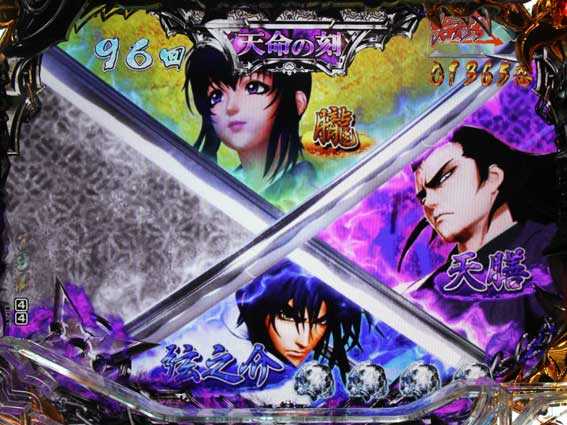 「夢幻泡影」よりも信頼度が高めで、弦之介が天膳に勝利すれば大当り。タイトルやテロップなどの色が変わるチャンスアップもあり。
