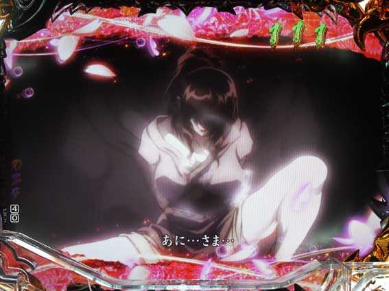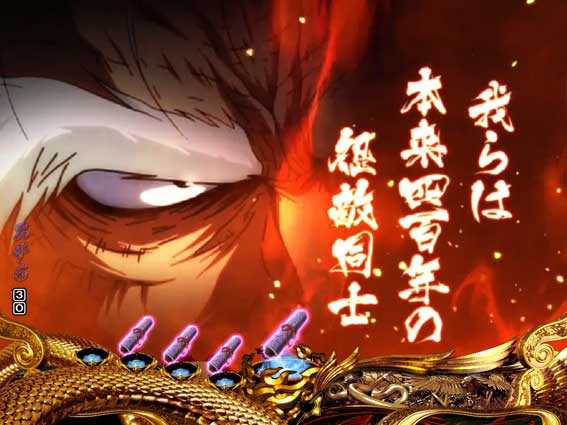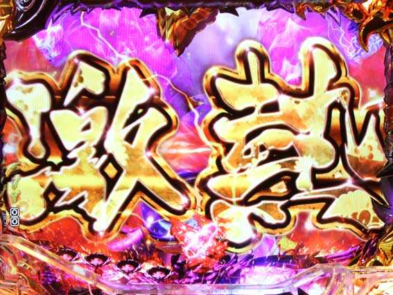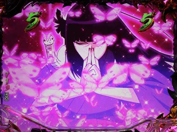 2種類ある相思相殺リーチの1つ。「鬼哭啾々」より若干信頼度が低めだが、それでも発展時の4割近くが大当りに繋がる。タイトルやテロップ、シネスコ(画面上下の帯)の色などにも注目しよう。