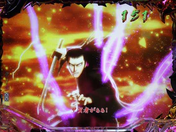 電サポ100回転のST。伊賀衆との一騎討ちで勝利すれば大当りとなるバトルリーチがメインで展開する。