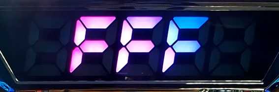 通常時はリール上部の7セグに「FFF」と表示されればボーナス当選。「FFF」が赤ではなくレインボーだとBIG濃厚となる!?