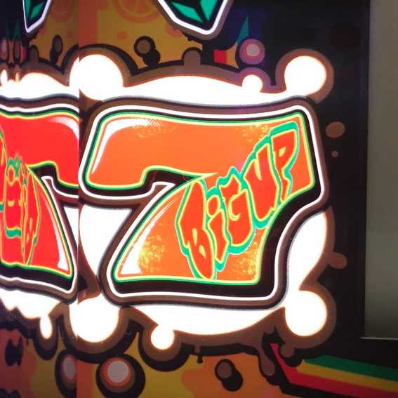 ヤーマの『ビッグアップ』は、RTを搭載したノーマルタイプ。演出は非常にシンプルで、レバーON時に予告音が発生したりリール停止音が変化すればボーナスのチャンス。最終的に7セグで「FFF」と表示されるとボーナス当選だ。RTはBIG終了後に突入し、50G継続。1Gあたりの純増が約0.5枚のため、既存のRT機より若干ではあるが出玉性能が高めだ。