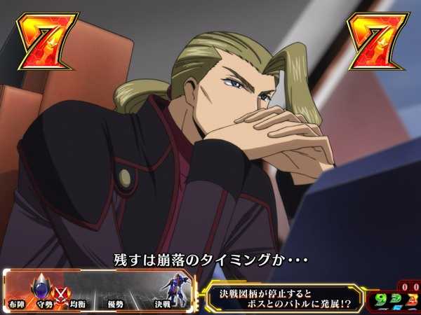 確変・エンペラーロード中はシュナイゼルとのバトルが展開される。奇数図柄テンパイなら確変大当りのチャンス。一方、偶数図柄テンパイなら確変終了のピンチとなる。なお、バトルを経由しない大当りも用意されており、それらのパターンから大当りした場合は、16R確変濃厚だ!