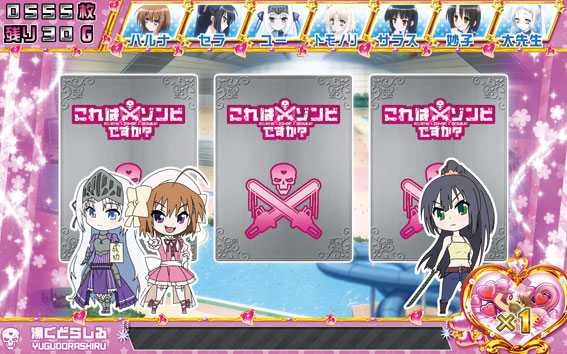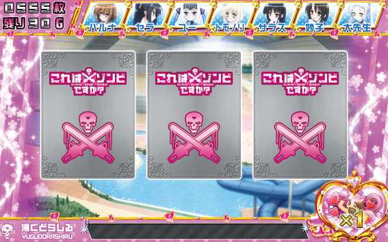 | 備考 | ★継続率管理型のスペシャルバトル ★歩が敗北しない限りバトル継続 ★ゾンビ目出現で魔装アタック突入 ★20セット継続でバトルエンディング発生 ★エンディング発生後は妄想ちゃれんじのキス成功率が98%にアップ |
