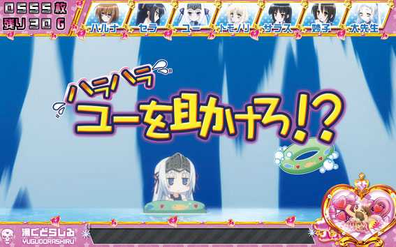 | 備考 | ★7人とキスできればART継続 ★レア役成立時は一撃で 全員とキスできる可能性あり ★継続成功後は「休憩中」を経て 湯ぐどらしるタイムに復帰 |