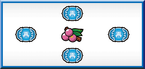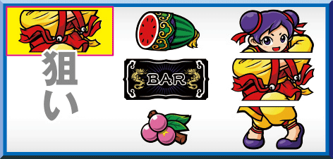 右リール上段に3連チーパオの中段図柄が止まればスイカ濃厚。左リールは青7を目安にスイカを狙おう!