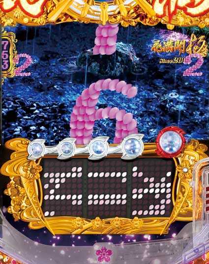 巨大な「花」「満」「開」の文字がすべて出現すれば大当り!?