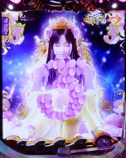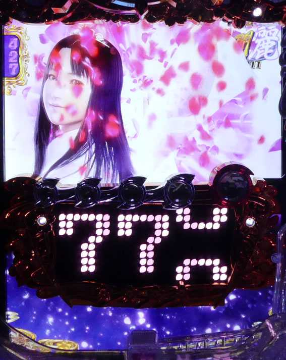 ドット内の図柄が、花びらが積もるような停止アクションをするとチャンス到来。