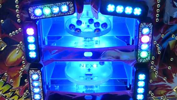 7セグで奇数図柄が揃うと上アタッカーが開放。ココに玉が入賞すれば、クルーン入口で一旦貯留された後にクルーンへ移動する。7セグで77揃いが出現すれば、上記画像のように複数個の玉を一気にクルーンへ送り込むことも可能だ。もちろん、クルーンへ玉が多く移動するほどV入賞の可能性もアップするぞ。