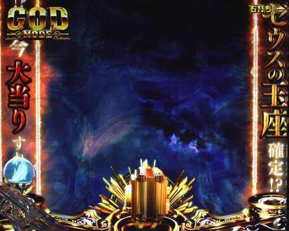 16R大当り(GOD GAME BONUS)終了後に突入する、時短50回転or確変モード。ステージがゼウスの玉座なら確変状態濃厚だ。50回転以内に当たらず電サポが終了した場合は時短であったことが濃厚となり、通常時に戻る(潜伏確変の可能性はナシ)。