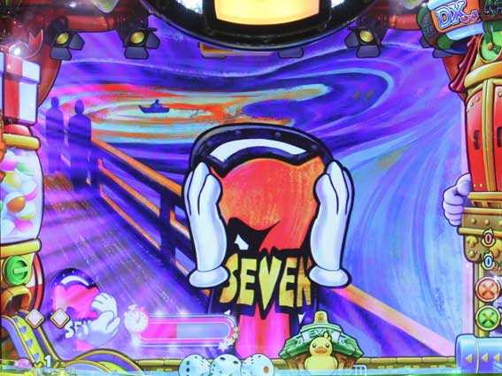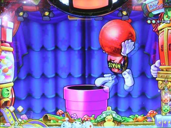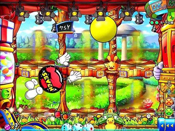 GOチャッカーを玉が通過するとサイコロが振られ、出た目の数だけナナティーがスゴロクを進んでいく。ハンマーマスに止まればまる得当りのチャンスで、ドル袋マスor金7マスに止まれば超激アツだ。