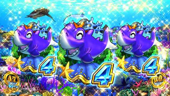 レギュラーボーナス終了後の1G目はレバーに気合いを込めよう。昇格リプを引けばスペシャル魚群タイムに突入するぞ!