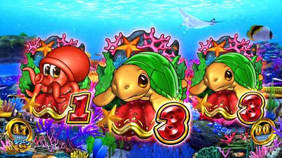 レギュラー中は毎ゲーム左リールに赤7を避けて消化しよう。ボーナス終了画面は、ビッグ終了後と同様にマリンサイン出現で設定2以上濃厚だ。また、レギュラー終了後の1G目はRT高確率状態となっており、ココで昇格リプレイを引ければRT「スペシャル魚群タイム」に突入する。レギュラー終了後1G目にいきなりスペシャル魚群タイムが始まれば、昇格リプレイ成立となる。
