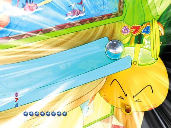 羽根が玉を拾えば役物内演出へ。玉の色が金なら!?