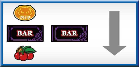 左リール枠上~中段に BAR(下にチェリーが付いている)狙い! |