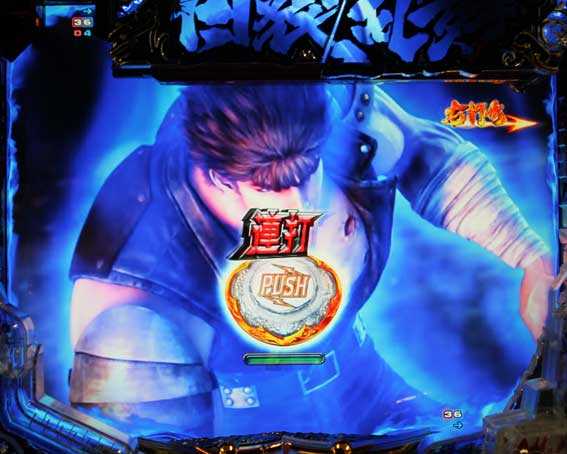 リーチハズレ後などに百裂拳チャンス図柄が出現すると発生。ボタン連打でテンパイラインが増えるほど信頼度がアップするぞ。