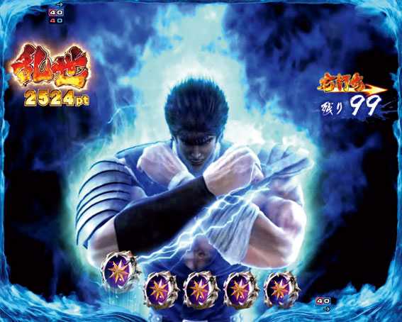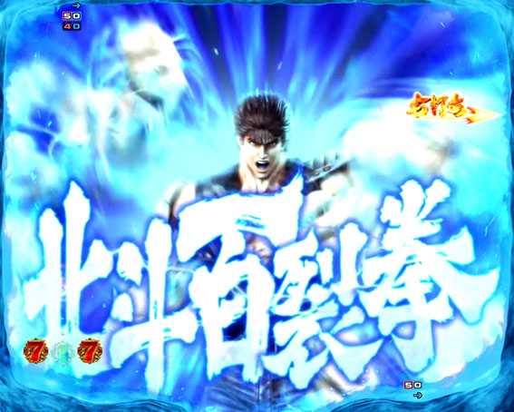 勝てば大当り濃厚or小当り分の百裂アイコン獲得。ケンシロウが敵の攻撃を被弾すると2R大当りが発動!