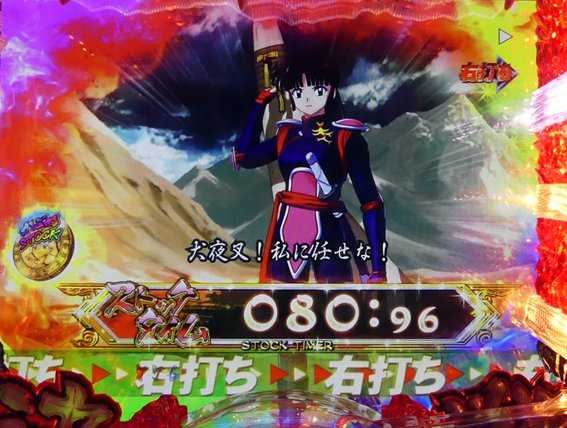 リーチ後に犬夜叉が現れ、「激熱」の文字が出現する大チャンス演出だ。