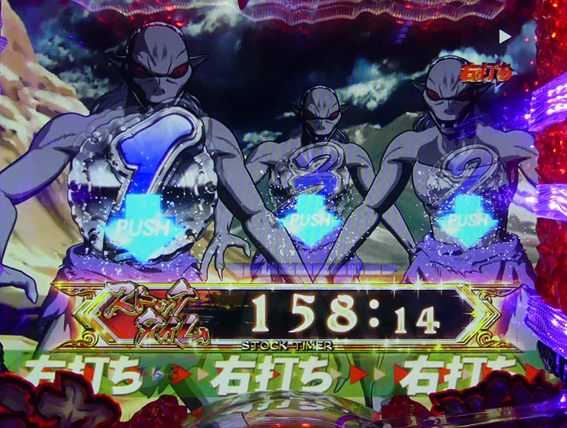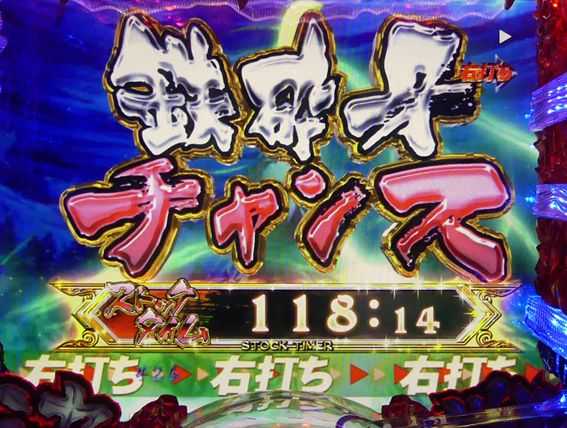 V穴へ入らなくても、左右にあるハズレ穴に入りさえしなければまだチャンスはアリ。再度フィンによって玉が弾かれ、V穴orハズレ穴のどちらかに入るまで役モノ抽選が繰り返される。V穴入賞率は約1/4.5だ。白童子チャンスと違い、こちらからの大当りは必ずストックタイムへ突入するので、ストックタイム突入のメイン契機となっている。