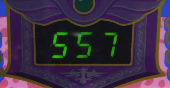 残りRTゲーム数は、停止ボタン上のクレジットセグと払い出しセグの間に表示されるぞ!