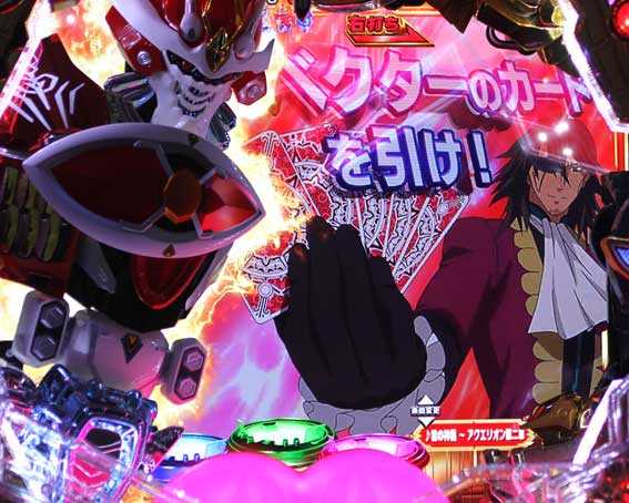 演出では盤面左側に搭載された「EVOLギミック」と、右側に搭載された「初代ギミック」が特徴。EVOLギミック合体で「EVOLリーチ」に発展、初代ギミック合体で「ソーラーリーチ」に突入する。さらにWギミックが合体すれば本機最強リーチ「共闘リーチ」に発展する仕組みだ。その他では最新作「アクエリオンロゴス」の演出も初搭載されているところもポイント。