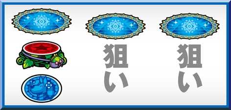 通常時の小役狙いは、まず左リール上段付近にBARを狙う。スイカが上段or中段に止まったら、中・右リールにピラミッドを狙ってスイカをフォローしよう。それ以外は中・右リールフリー打ちでOKだ。