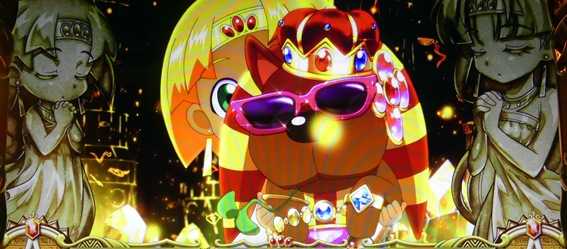 「クレアの秘宝伝」シリーズ第3弾は、前作に引き続きボーナス+RTタイプで登場。BIG中やRT中の演出を選択して楽しめる点が演出面での魅力だが、今作では通常時の演出も選択可能。「押忍!番長」や「吉宗」など、大都技研の歴代機種をモチーフにした演出の全7カスタムが用意されているぞ。設定1でも約149分の1と高い合成確率から繰り出されるボーナス連打にも注目だ。