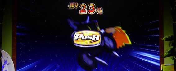 番長2の頂RUSHを再現。レア役後はPUSHボタン押下で上乗せ風の演出が発生し、その数値でボーナス期待度を示唆する。前兆が長いほどチャンスで、5G前兆ならボーナス濃厚だ。