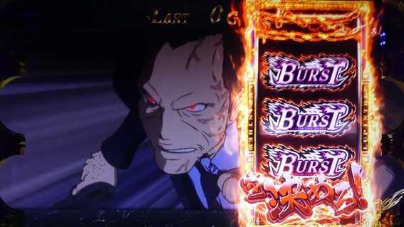 最終ゲームは右リールに3連BURST図柄が止まればヒーローズロード突入! リールアクションと連動するカットインが完成すればその時点で突入濃厚だが、失敗してもノーチャンスではないので、諦めずに狙ってみよう。