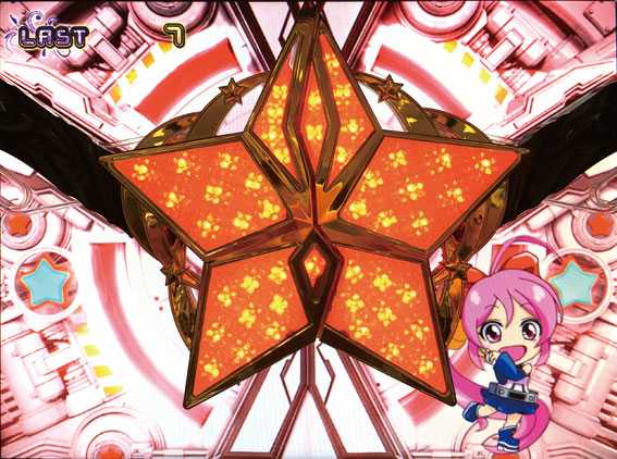 シリーズお馴染みのART継続告知演出。7G以内にBGMが消えればART継続だ。背景の色が重要で、青<赤<金の順に継続期待度がアップ。また、ストックがある場合は「星役物」が出現する〝カウントダウン7〟となり、ART継続濃厚となる。