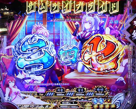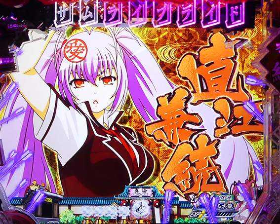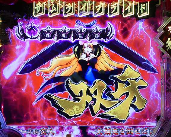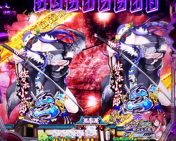 サムライクライマックスで大剣鬼討伐成功、または電サポ中の確変大当り後に突入する、フル電サポの確変モード。テンパイする図柄の色が命運を分ける。