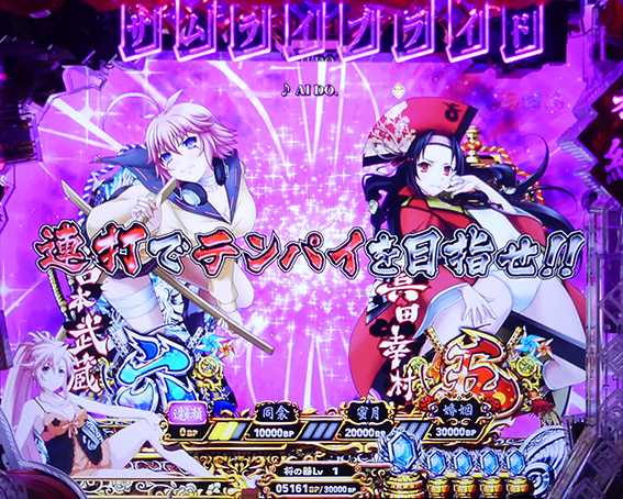 次回大当りまで継続の確変を搭載したループタイプ。初当りのメインである出陣BONUS後に突入するサムライクライマックスは、内部的に確変であっても電サポが10回で終わってしまうことがあるので注意。ヤメる場合は、鎮護石モードで帯の色変化の有無を必ず確認しよう。なお、電サポ中の通常大当り後に突入する百花乱舞に関しては、電サポ終了=通常状態濃厚に。確変が潜伏している可能性はないので即ヤメしても問題ない。