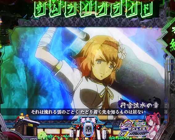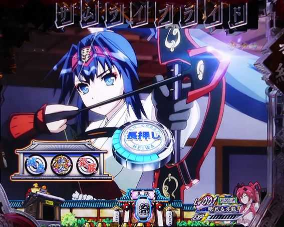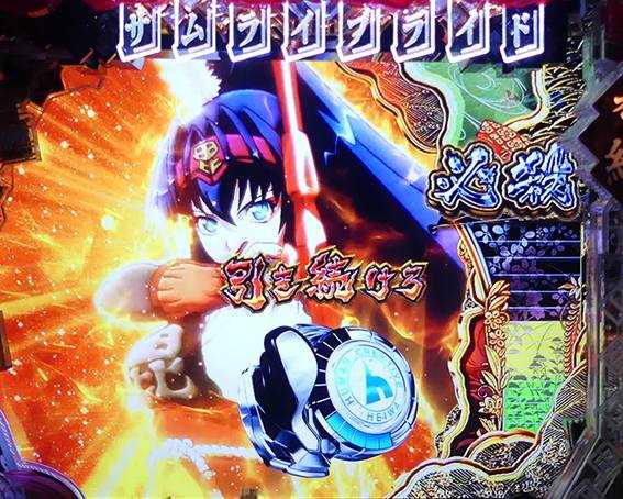 サムライクライマックス終了後に突入する潜確or通常状態。潜確の場合は30回転を超えると帯が金色に変化するので、必ず確認しておきたい。