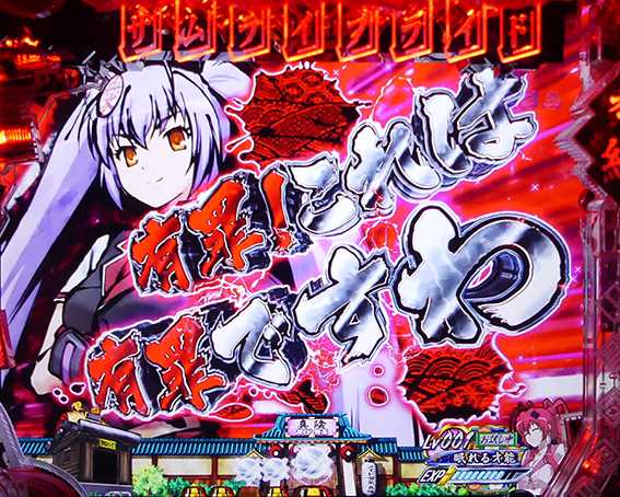 変動中に巨大な刀が出現し、鍔迫り合いを始めると大チャンス!