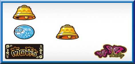 南国ボーナスは1Gあたりの純増が1.8枚で、ストック&ループ型。残り8Gから始まる「バタフライゾーン」にて筐体左側の蝶ランプがお馴染みの効果音とともに光れば1G連濃厚となる。