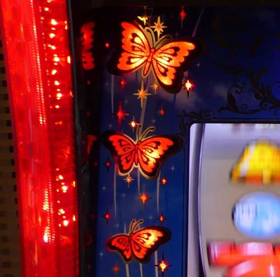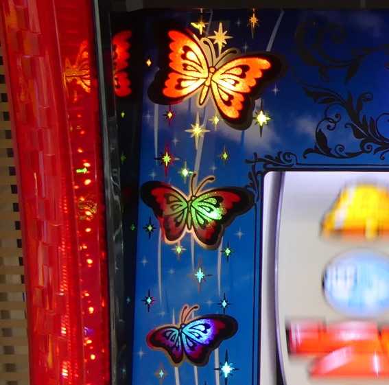 ★バタフライゾーン中は女の子ランプが点灯 ★残りゲーム数はリール真下のデジタルで表示 ★バタフライランプが点灯(飛翔)すればART1G連濃厚 ★8G消化後のレバーONまで飛翔のチャンスあり |
