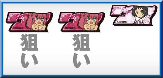 小役ナビ発生時に対応役が揃わなければボーナス濃厚。ロリロリバトルへ発展すればチャンスで、白7を狙って揃えばBIG以上当選(揃わなくてもボーナスの可能性あり)となる。