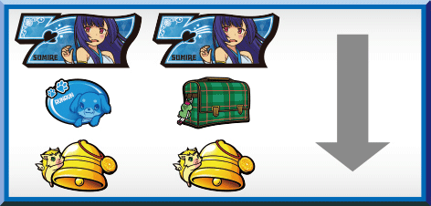 シャッター閉鎖でボーナス濃厚。色が銀だと全ボーナスの可能性があり、金ならBIG以上濃厚。また、BGMが消灯した場合もBIG以上濃厚となるぞ。なお、金シャッター+BGMの複合は同色BIG以上濃厚だ。