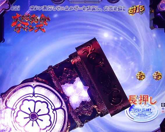 演出面では、大砲役モノがさらに進化した「極大砲可動体」と、液晶全体を覆い尽くす巨大ギミック「極家紋可動体」が迫力満点。その他では「覇王進撃ゾーン」「大廻天連続演出」「剣舞演出」「決戦系リーチ[大砲]」「極熱カットイン演出」「ストーリーリーチ 桶狭間の戦い」の六大極演出が注目だ。
