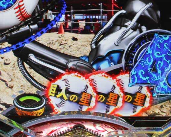 演出では主人公の飛雄馬がポイントで、幼少→高校→プロと成長してデカくなるほど期待度がアップする。また液晶内のアイテムがデカい演出もチャンスだ。その他では「投球予告」「群予告」「巨人の星予告」「破天荒リーチ」の4大入魂演出もポイント。