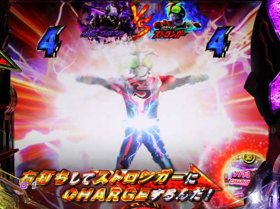 バトルタイムではライダーと怪人の戦いが繰り広げられ、勝利すれば大当り。バトルの種類は2パターンで、ライダーバトルは出撃ライダーが多いほど期待度がアップ。時短最終回転で発生する最終決戦バトルはストロンガーが登場し、右打ちでチャージをして電キックを叩き込む信頼度の高い演出となっている。
