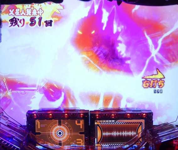 通常時の赤図柄揃いを機に突入する11R確変。SUPERゴジラボーナス終了後のSTゴジラBOOSTもST濃厚となる。