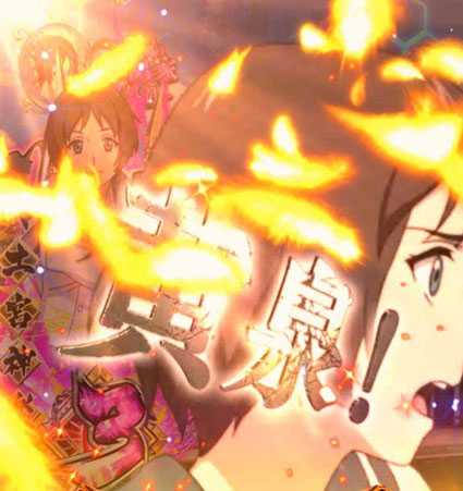 乱紅蓮の解放に成功で発展の可能性あり。黄泉と乱紅蓮がバトルで勝てば大当り!