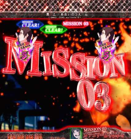ボタンPUSHでMISSIONナンバーをアップさせる演出が展開。最終的にMISSION03まで発展すればアツい。