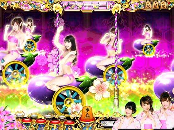 ボタン連打で棋娘図柄が揃えばコスプレチャンスに発展!